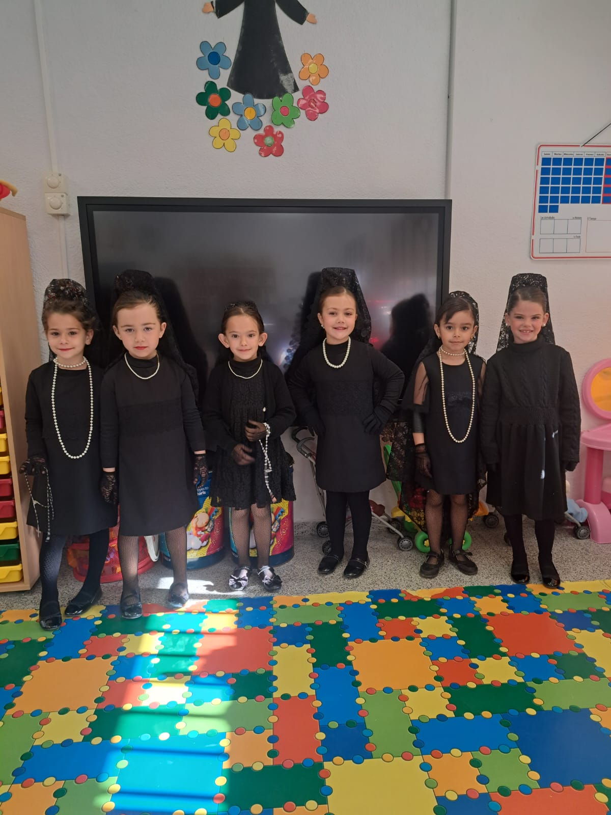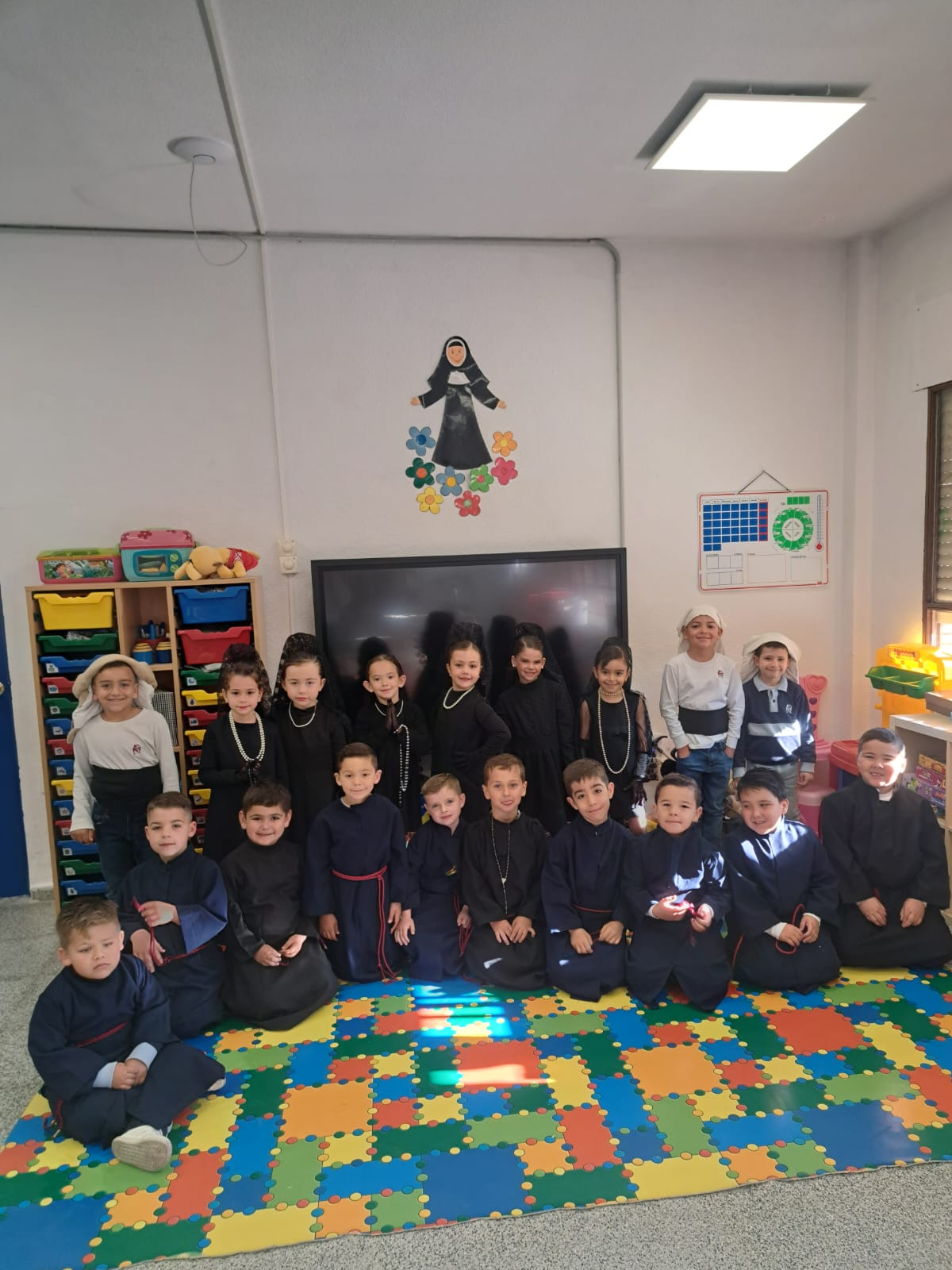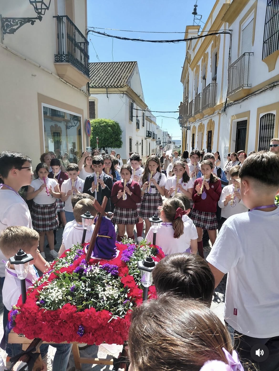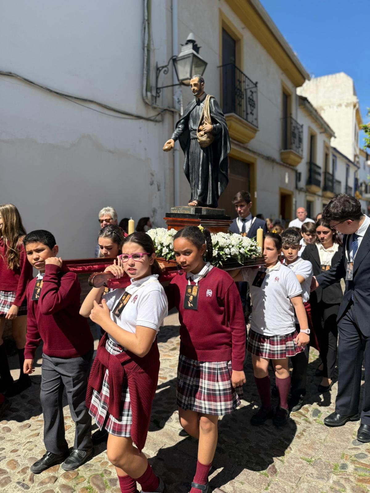 Mantillas y Monaguillos: Las alumnas, luciendo con elegancia el tradicional encaje, y los monaguillos, con sus cestos y ciriales, aportaron el color y la solemnidad necesarios.